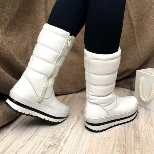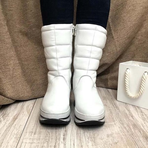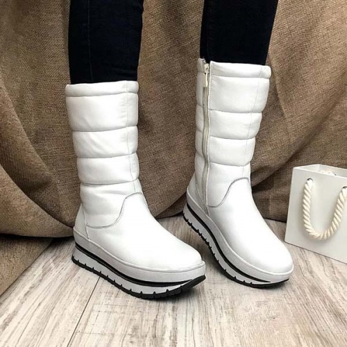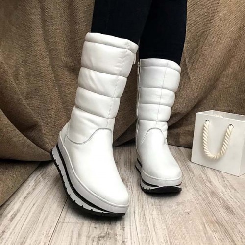 Купить качественные недорогие женские сапоги зимние кожаные, внутри мех шерстяной, цвет: белые в Харькове магазин фламода. Доставка по всей Украине. Интернет магазин flamoda.com.ua