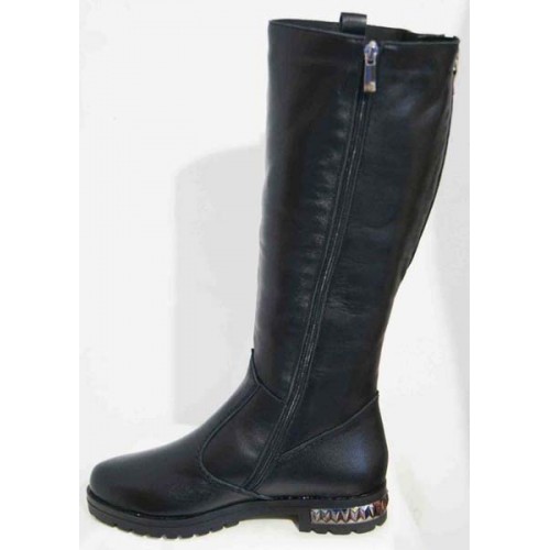 Купить качественные недорогие женские сапоги демисезонные/зимние кожаные, внутри байка/мех шерстяной, цвет: черный, большие размеры в Харькове магазин фламода. Доставка по всей Украине. Интернет магазин flamoda.com.ua