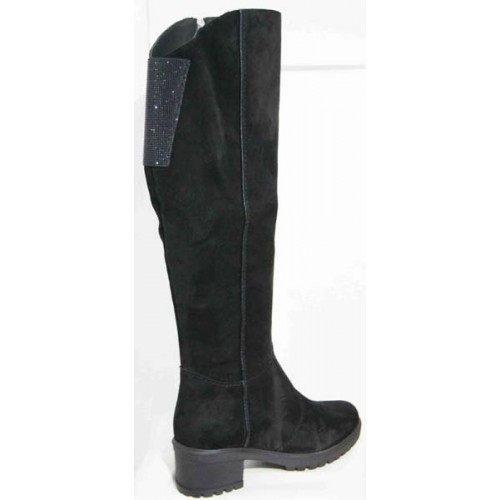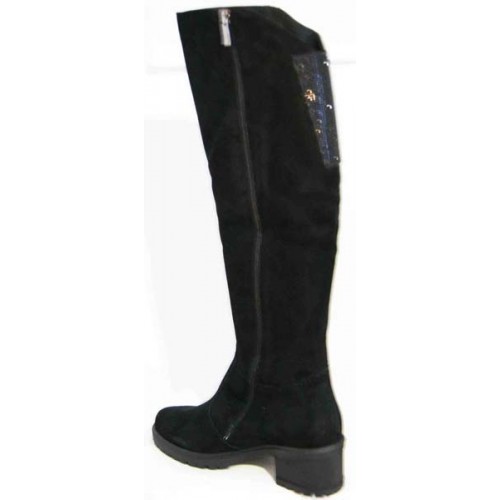 Купить качественные недорогие женские сапоги зимние на низком каблуке, замшевые, внутри мех шерстяной (евровысота), цвет: черный, большие размеры в Харькове магазин фламода. Доставка по всей Украине. Интернет магазин flamoda.com.ua