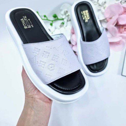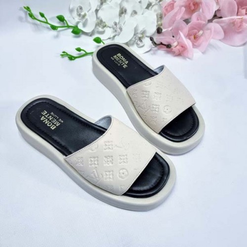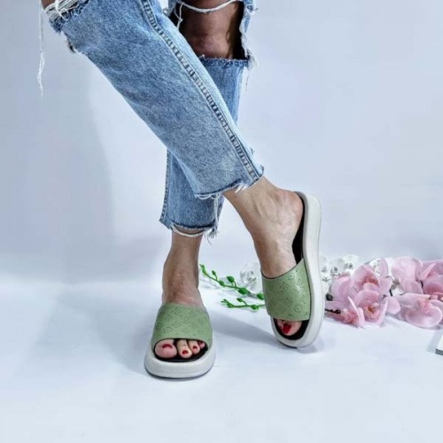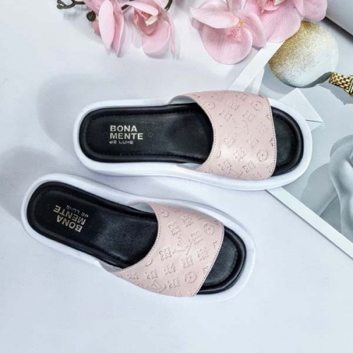 Купить качественные недорогие летние шлепанцы женские кожа с тиснением LV. Внутри изделия: кожаная подкладка и кожаная стелька; подошва полиуретан 2 - 4 см в Харькове магазин фламода. Доставка по всей Украине. Интернет магазин flamoda.com.ua