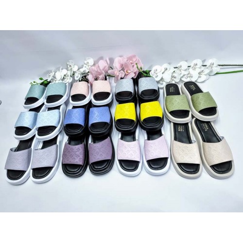 Цвета: серо-голубой-1110, ярко-желтый-1018, лазурно-синий-1102, черный, сирень, коричневый принт LV - на ЧЕРНОЙ подошве.
