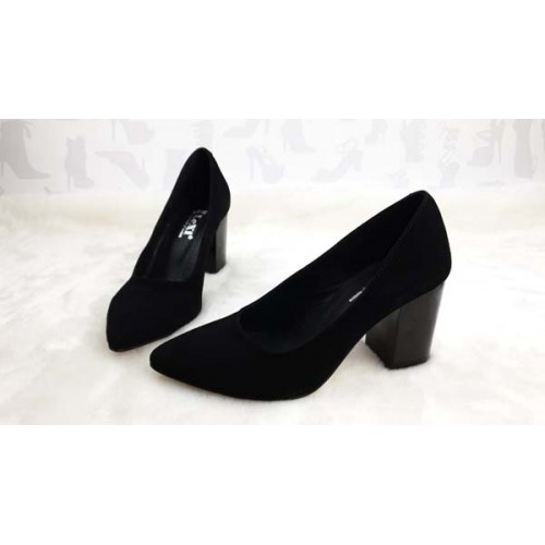 Купить качественные недорогие женские туфли лодочки на каблуке из кожи/замши, внутри кожа, цвет: черный в Харькове магазин фламода. Доставка по всей Украине. Интернет магазин flamoda.com.ua