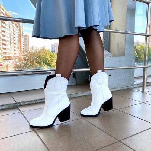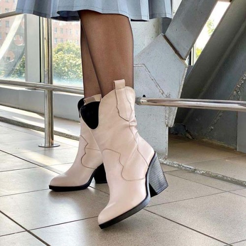 Женские ботинки на каблуке итальянская кожа/замша 0070БНМ