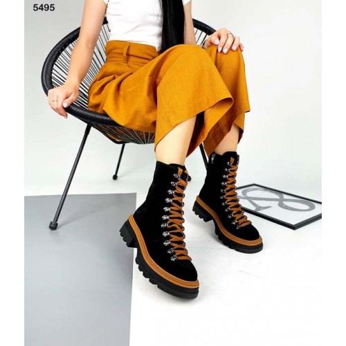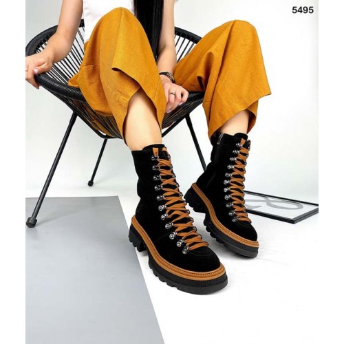 Высокие ботинки женские замша/кожа деми/зима 5496ТОПС