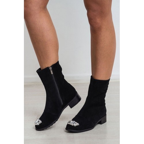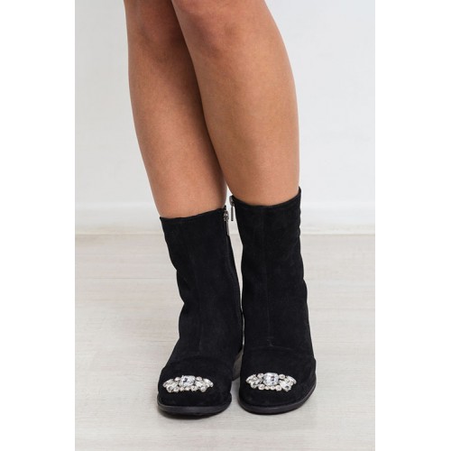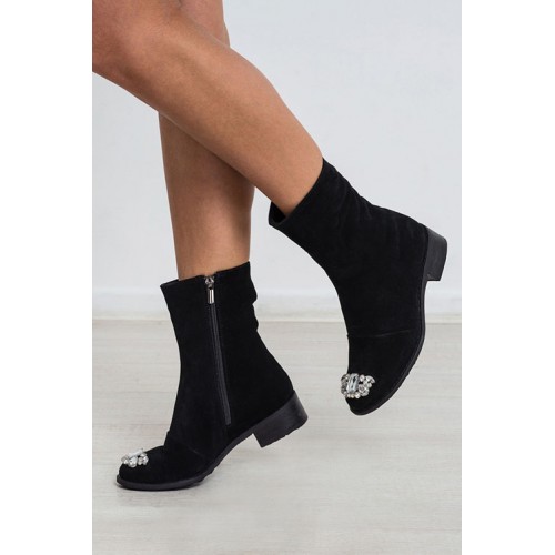 Купить качественные недорогие замшевые ботинки женские с камнями зимние и демисезонные, внутри: мех шерстяной или байка. Цвет черный, в Харькове магазин фламода. Доставка по всей Украине. Интернет магазин flamoda.com.ua