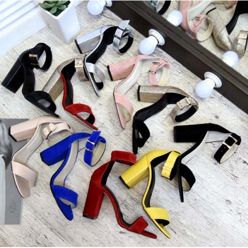 Купить качественные недорогие женские босоножки на каблуке натуральная кожа, замша, стелька кожа, каблук 10 см, цвет: черный, серебро, красный, пудра, желтый, синий в Харькове магазин фламода. Доставка по всей Украине. Интернет магазин flamoda.com.ua
