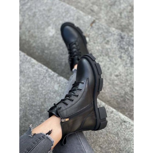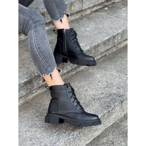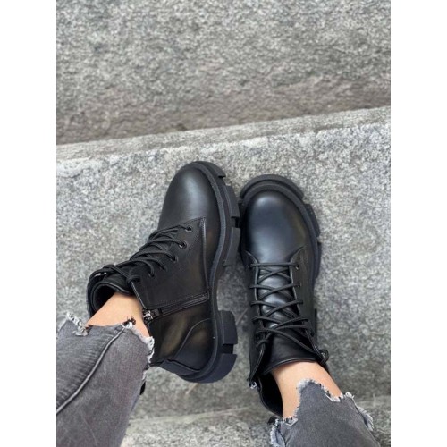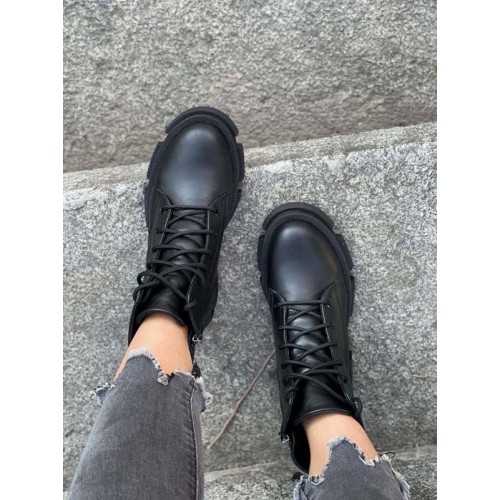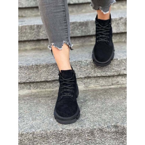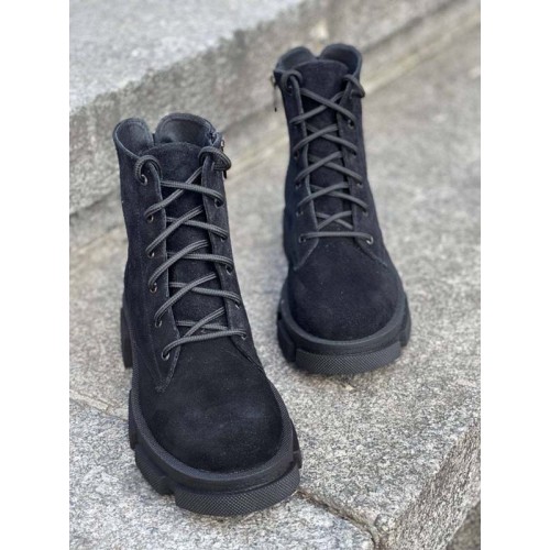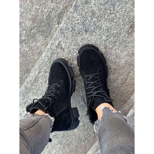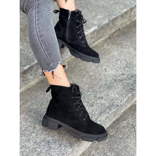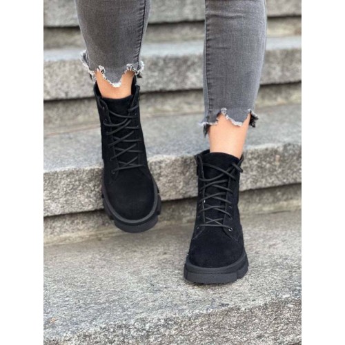 Купить качественные недорогие ботинки женские без каблука деми/зима кожа/замш. Внутри набивная шерсть/итальянская байка. Подошва - полиуретан. Цвет: черный в Харькове магазин фламода. Доставка по всей Украине. Интернет магазин flamoda.com.ua