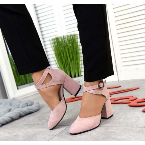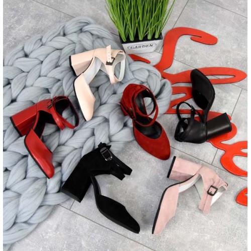 Купить качественные недорогие женские туфли летние на каблуке с ремешком c круглым носиком изящные и комфортные. Натуральная кожа и замша, стелька кожа, высокое качество, каблук 8,5 см, цвет: черный, красный, пудра, беж в Харькове магазин фламода. Доставка по всей Украине. Интернет магазин flamoda.com.ua